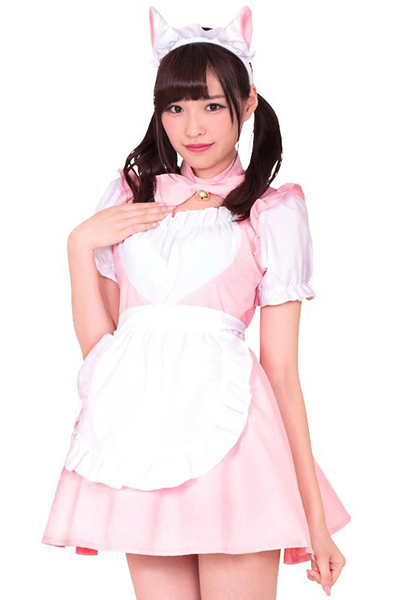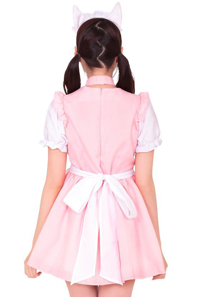 ネコ耳と鈴付きの大きなリボンが可愛い!メイド コスチューム「いちご☆メイド ピンク」。