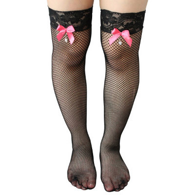 HOME > ストッキング > レース付きリボンチャームネットストッキング ローズ