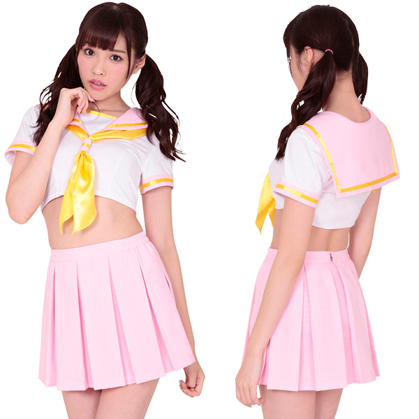 ヘソ出しのミニ丈でセクシーさもプラス!女の子らしいパステルカラーの3色をバランス良く取り入れた甘々なメルヘンデザインで、キュートな女子校生になれる制服コスチュームです。