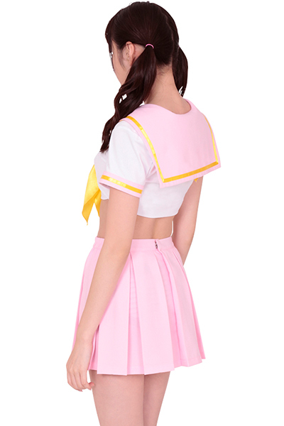 ●ピンク・白・黄色のカラフルなセーラートップス●夢見るピンクのプリーツスカート●ファンシーな黄色のスカーフタイ。
