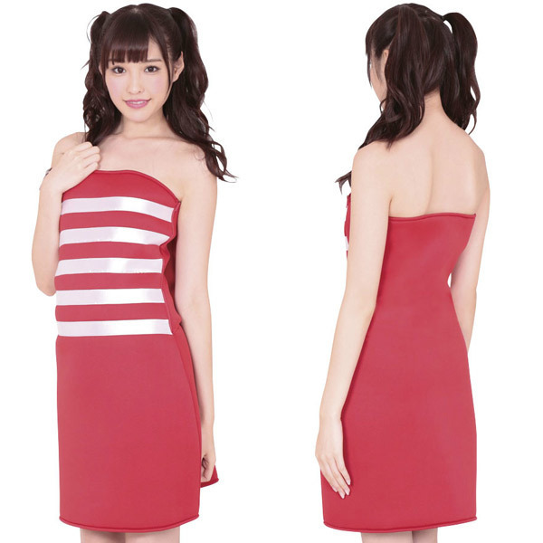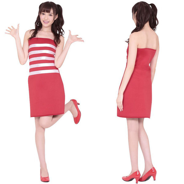ビビッドな赤に光沢ホワイト系ラインでインパクトを与えつつ、別の意味でも衝撃を与えてくれそう?シンプルさが可愛いワンピースコスチューム。