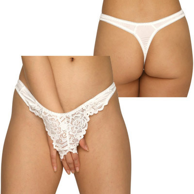 HOME > オープン ブラ・ショーツ(穴あき) > トリコット&レース生地オープンクロッチTバック ホワイト