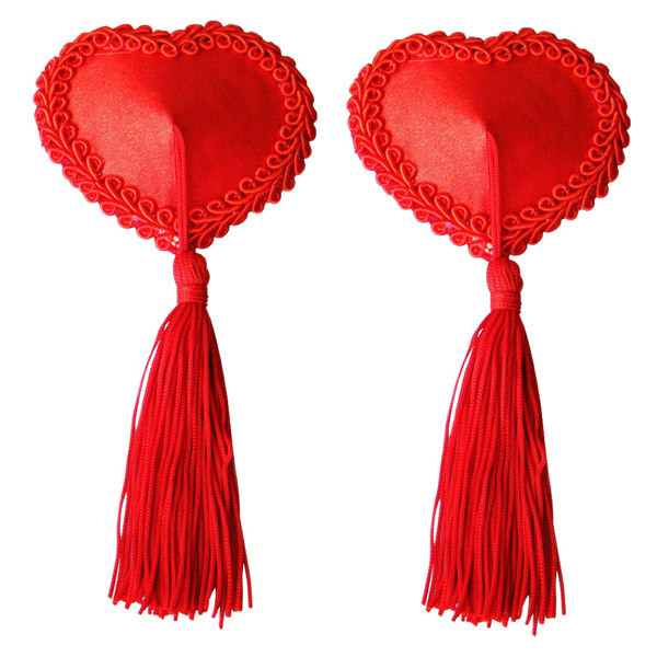 HOME > 小道具(ニーソックス・猫耳) > ニップルタッセル (フリルサテンハート) 赤