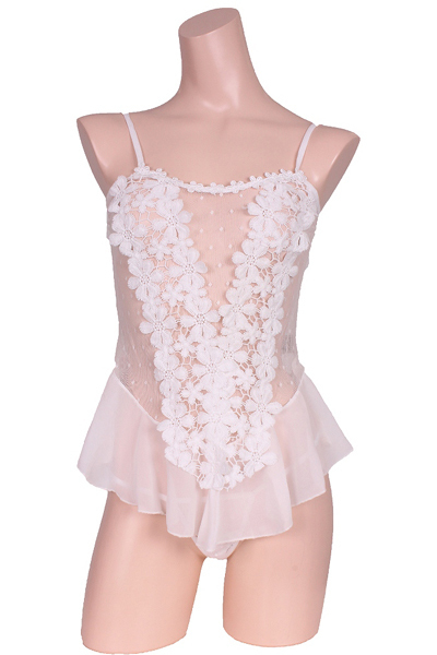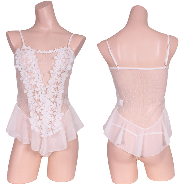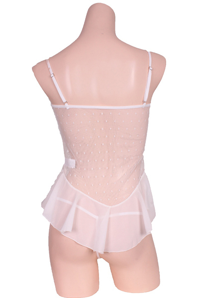 HOME > ベビードール > フリルとレースで可愛さ増しベビードール&Tバックセット ホワイト