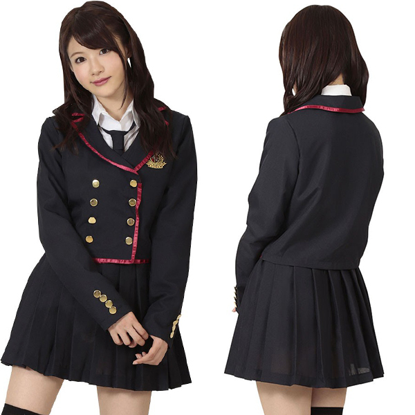 キラキラ輝く金のボタンや、紺のブレザーにアクセントをつける赤ラインなど、アイドル女子にふさわしい豪華な仕上がりとなっています♪フェミニンなパフスリーブのブラウスを併せれば貴女の煌めきも更にUP!アイドル女子校生に変身してキラキラ輝いて☆