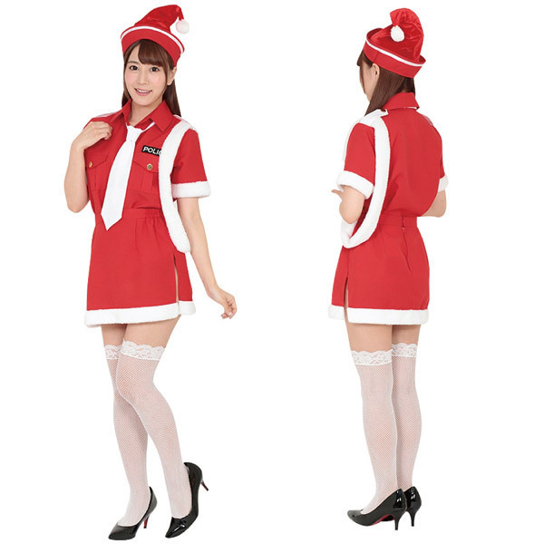 聖なる夜は婦人警官もクリスマス気分♪赤×白カラーの可愛いクリスマス衣装。