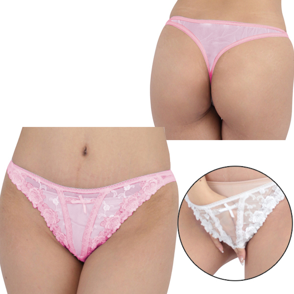 HOME > オープン ブラ・ショーツ(穴あき) > 極薄シースルー&レースオープンTバック ピンク