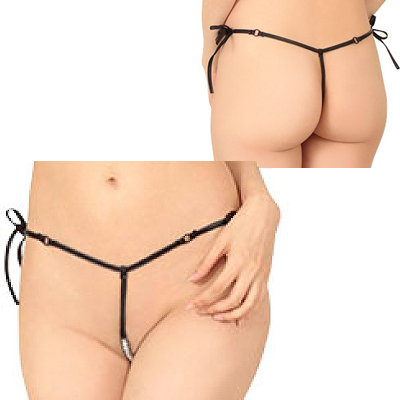 HOME > オープン ブラ・ショーツ(穴あき) > 露出系エナメル12連パールひもパン ブラック