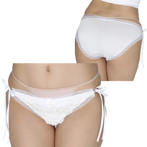 HOME > ショーツ > 2段のフリルレースが可愛い光沢フルバック ホワイト