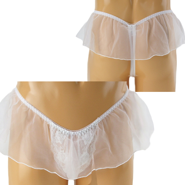 HOME > メンズ ショーツ・ビキニ > メンズ シースルースカート付きレース刺繍Tバック (ホワイト)