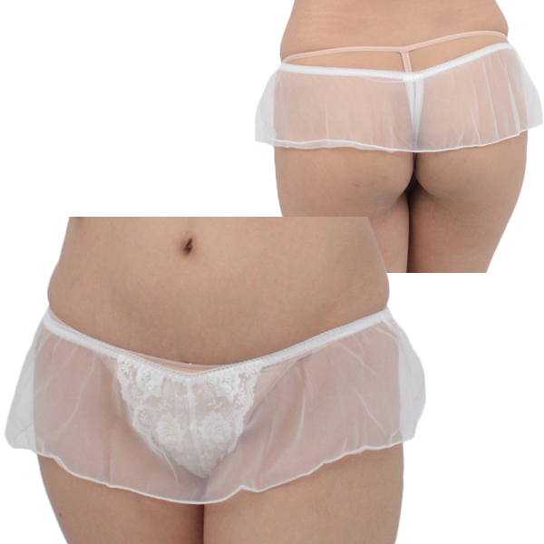 HOME > ショーツ > レディス シースルースカート付きレース刺繍Tバック ホワイト