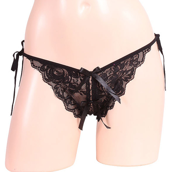 HOME > オープン ブラ・ショーツ(穴あき) > 女らしさ満開サイドリボンオープンショーツ ブラック