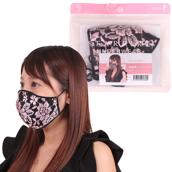 HOME > 小道具(ニーソックス・猫耳) > 薔薇刺繍レースメッシュマスク ピンク