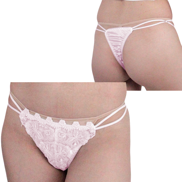 HOME > ショーツ > 肌触りのいい光沢レース付き脇2本ゴムTバック ピンク