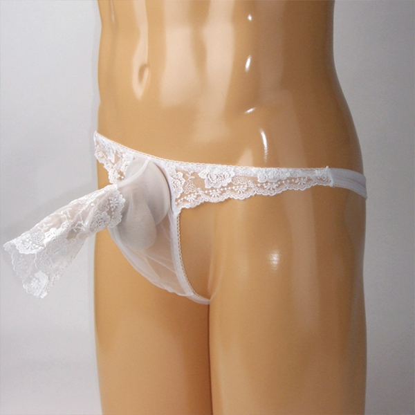 HOME > メンズ ショーツ・ビキニ > メンズ スケスケシースルー素材のセクシーな生地にレース付きぞうさん貫通型TB ホワイト