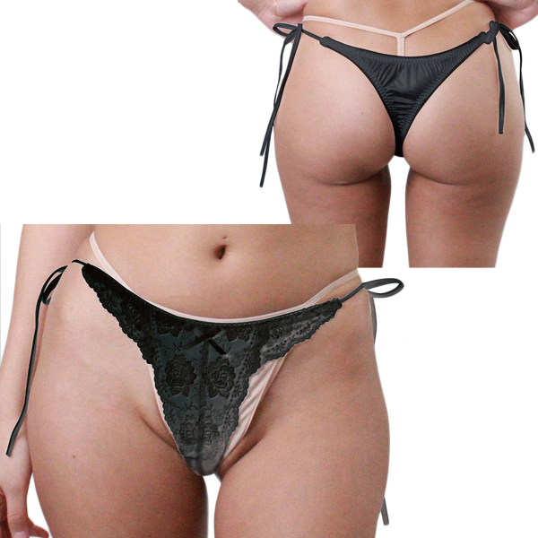 HOME > ショーツ > 光沢生地にレース付き脇ヒモTバック Lサイズ ブラック