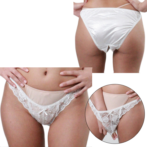 HOME > オープン ブラ・ショーツ(穴あき) > 柔らかな光沢生地にレース付きオープンフルバック 2Lサイズ ホワイト