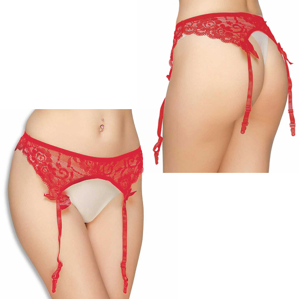 HOME > ガーターベルト付 > 定番人気のフラワーレースガーターベルト (レッド)