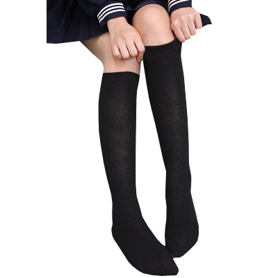 制服ソックスと言えばやっぱりコレ!綿リブ編みの黒ハイソックス。