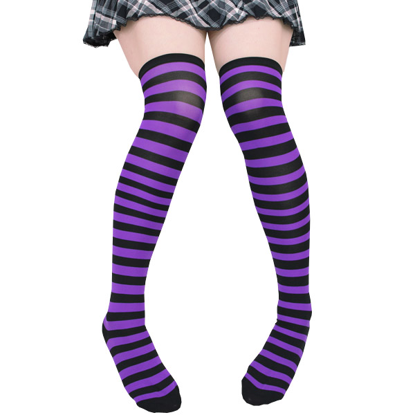 HOME > 小道具(ニーソックス・猫耳) > ニーハイボーダー パープル・ブラック 幅1cm