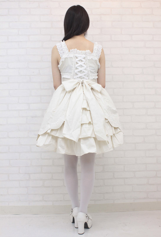 プリンセスのようなふんわり感で可憐にドレスアップ!後ろ姿も可愛いオフホワイトのジャンパースカート(M)。