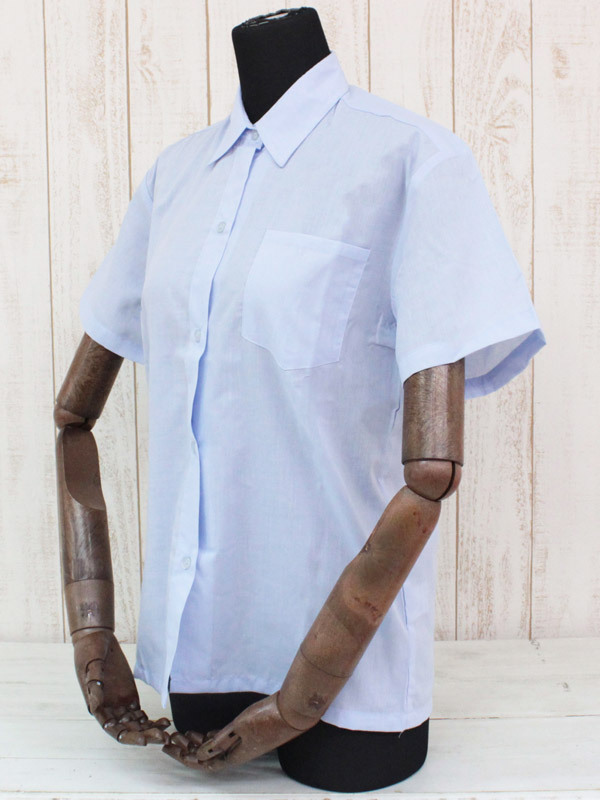 制服コスプレのマストアイテム!何かと重宝しそうな、爽やかサックスブルーの半袖ブラウス。