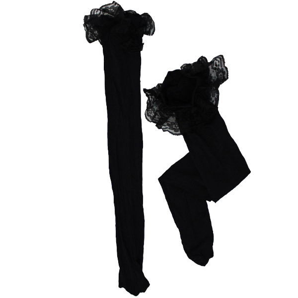 HOME > 小道具(ニーソックス・猫耳) > レース付きニーハイ 黒×黒
