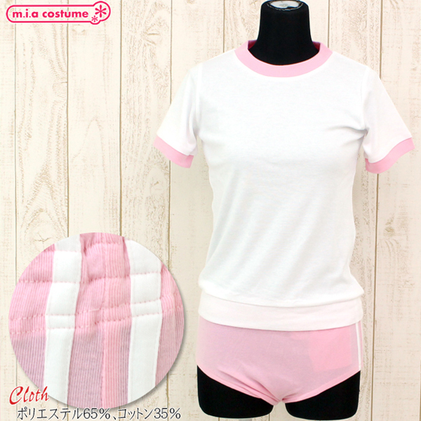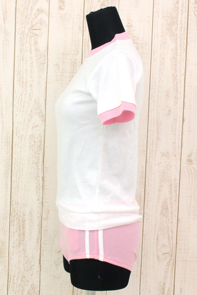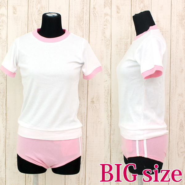 人気の体操服コスプレにピンクの大きめサイズが登場!トップスとブルマの嬉しい上下セットで、白とピンクの色使いが可愛い、肌触りバツグンの伸縮性のある素材を使用した体操着コスプレです。