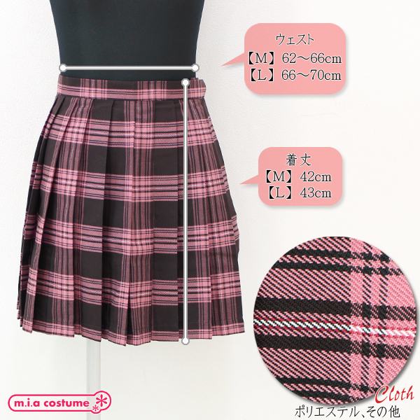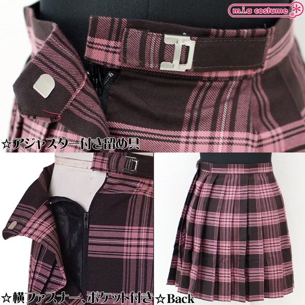 HOME > 小道具(ニーソックス・猫耳) > ポケット付きのチェック柄プリーツスカート単品 ピンク×ブラウン Lサイズ