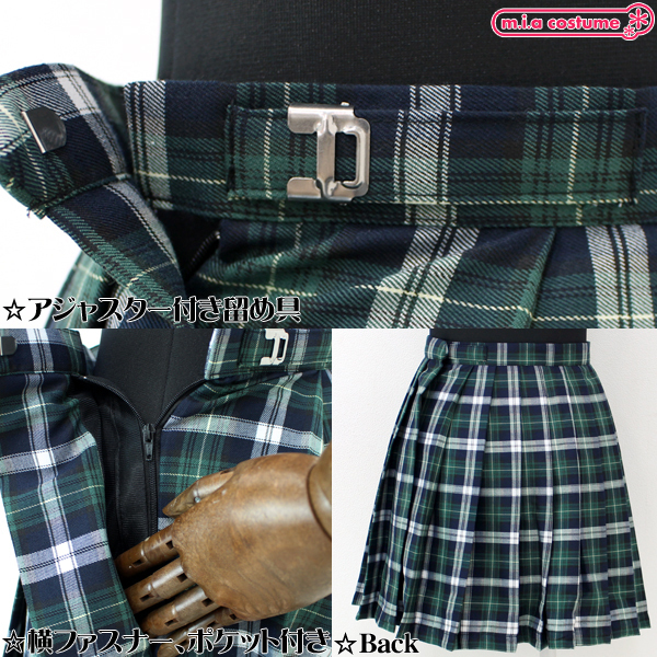 HOME > 小道具(ニーソックス・猫耳) > ポケット付きのチェック柄プリーツスカート単品 緑×白 Mサイズ
