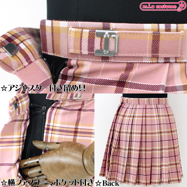 HOME > 小道具(ニーソックス・猫耳) > ポケット付きのチェック柄プリーツスカート単品 ピンク×キャメル Mサイズ