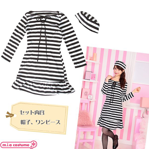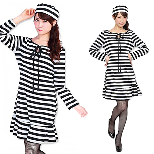滑らかな肌触りと着心地の良さが魅力の帽子付き長袖囚人コスプレ。
