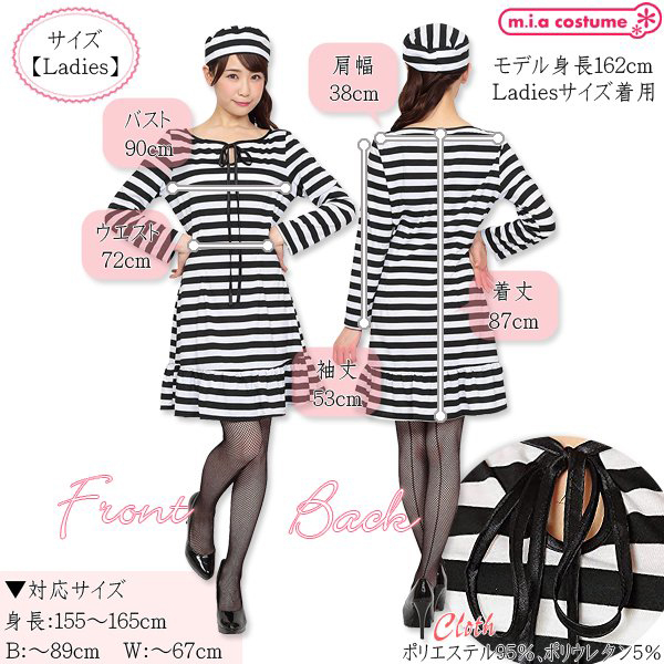 フリーサイズ:B90cm・W72cm・肩幅38cm・袖丈53cm・着丈87cm セット内容:帽子、ワンピース(裏地なし) 素材:ポリエステル95%、ポリウレタン5% 対応サイズ:身長155〜165cm・B〜89cm・W〜67cm