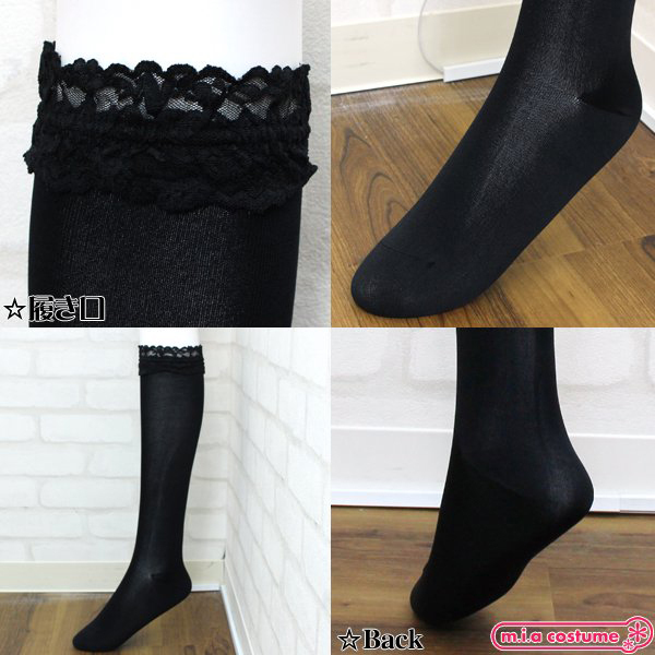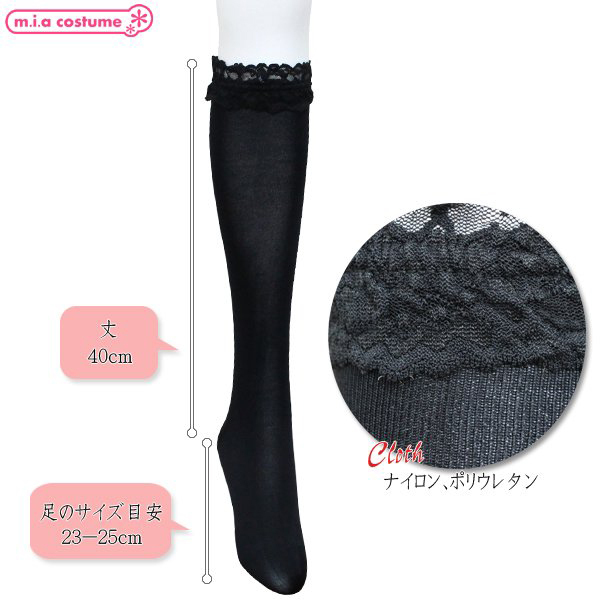 HOME > 小道具(ニーソックス・猫耳) > ソフトナイロンレース付ハイソックス 黒 無地 40cm丈 23〜25cm