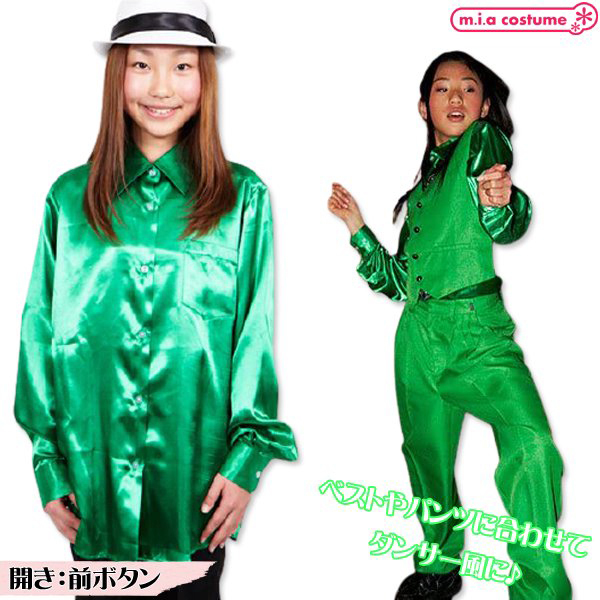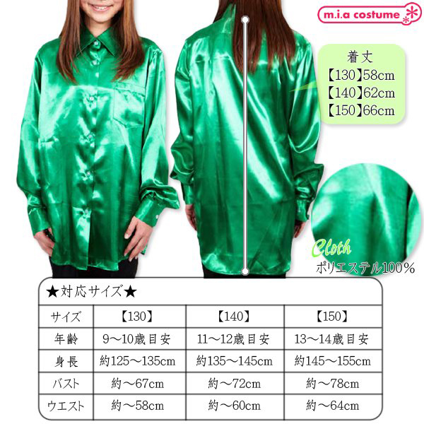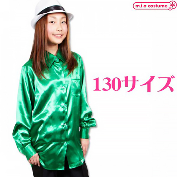 HOME > 小道具(ニーソックス・猫耳) > サテンシャツ (グリーン 130サイズ)