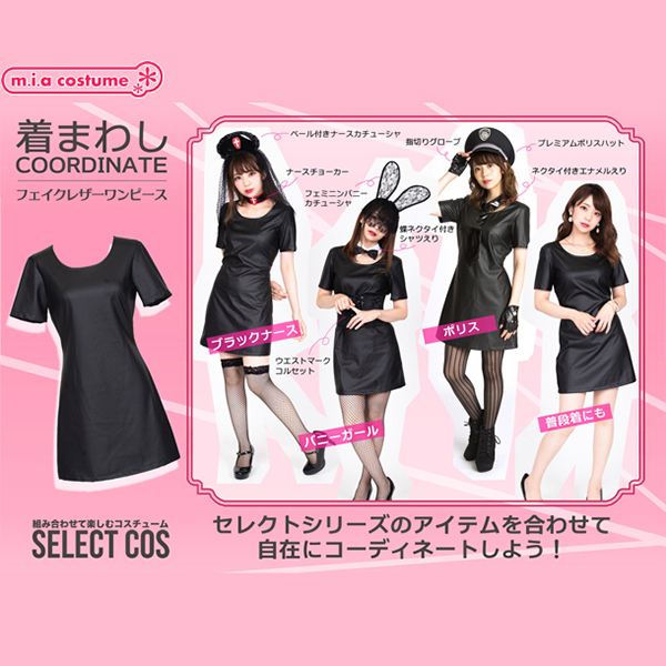 HOME > 小道具(ニーソックス・猫耳) > セレクトコス フェイクレザーワンピース ブラック