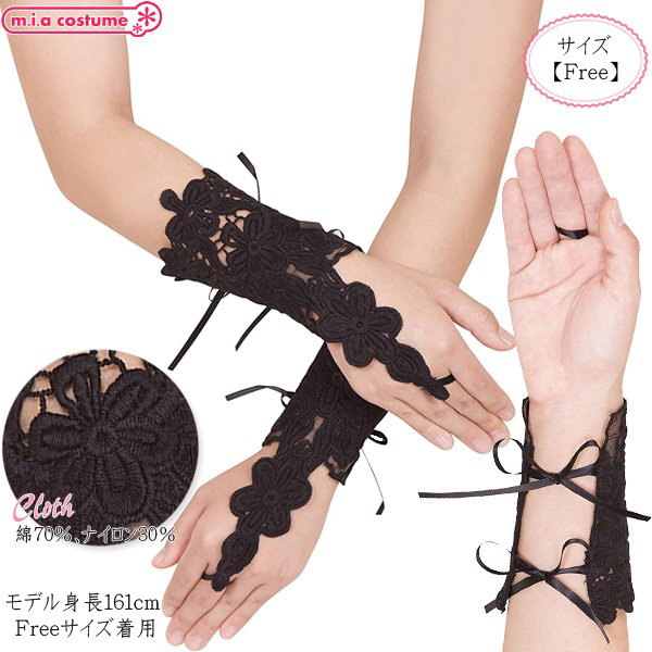 HOME > 小道具(ニーソックス・猫耳) > レースグローブ Chloe ブラック