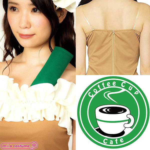ストレッチ素材なので着やすくコーヒーカラーなワンピースが印象的♪付属のシールを胸元に付ければスタイリッシュなカフェスタッフに!舞台衣装としても映えますよ♪