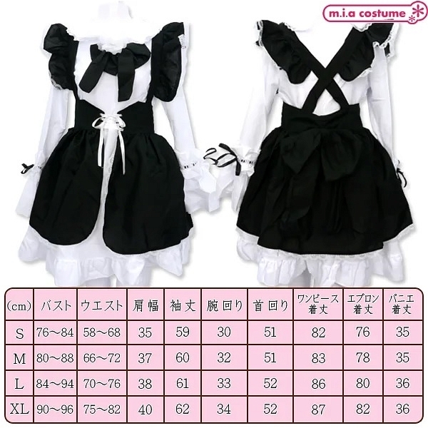 セット内容:胸リボン付きワンピース(裏地なし、後ろファスナー)、編み上げリボン付きエプロン(前側リボンにて編み上げでの調節可)、パニエ(ウエスト総ゴム、マジックテープと紐でウエスト調節可、チュール3段、裏地に穴あり仕様)、コサージュ(ピンでの脱着可)、カチューシャ、帽子●XLサイズ