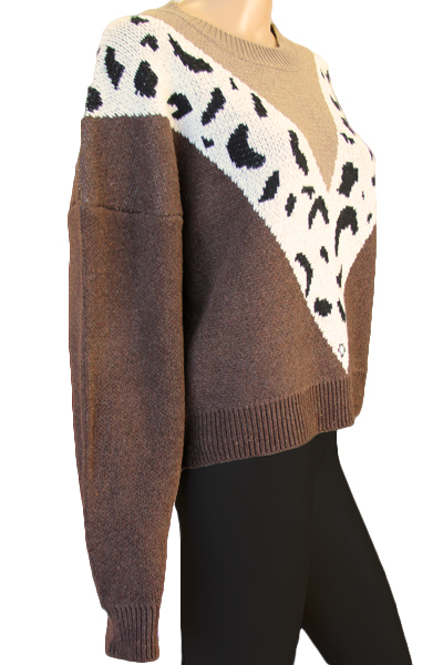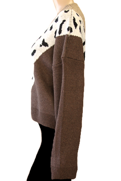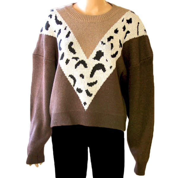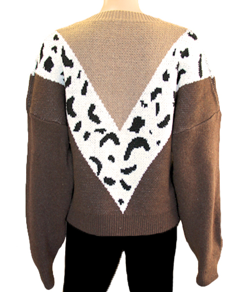 HOME > その他 > V字ラインのヒョウ柄ニットセーター Mサイズ ブラウン
