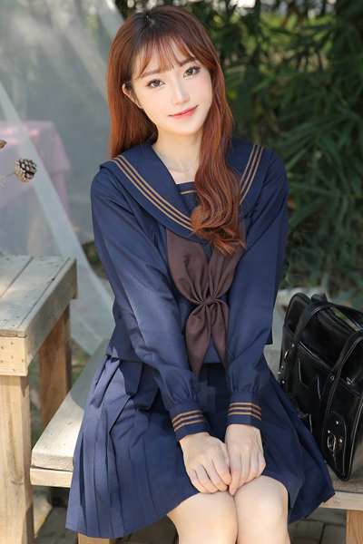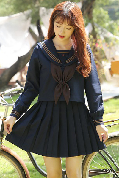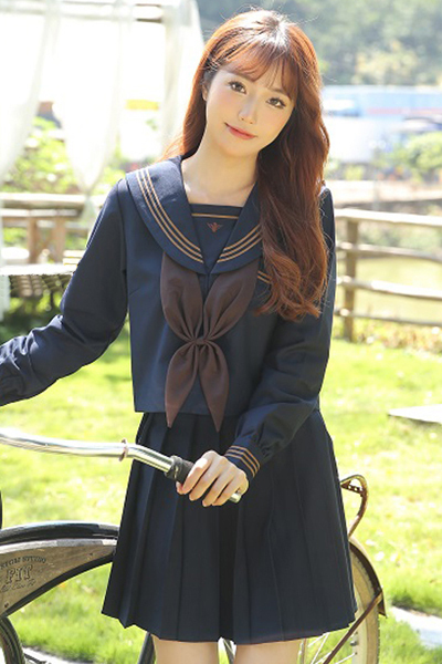 HOME > セーラー服・制服 > <malymoon>紺×茶クラシック長袖セーラー服